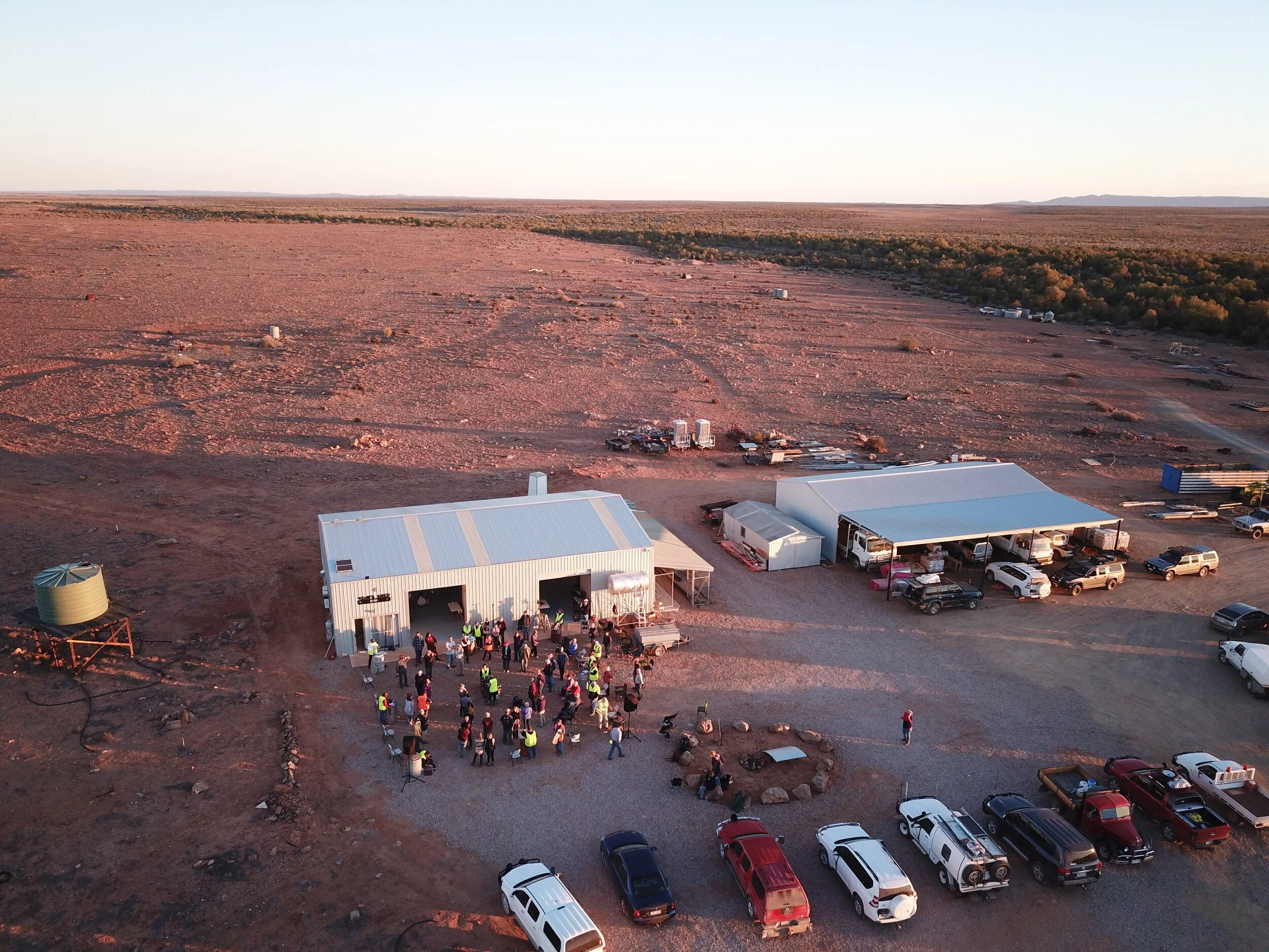 5pm and complete silence at Tom’s shed. The audience is keen to be involved and walk or stand silently within the square. The sound, pre-recorded by Jesse commences and the percussion by the ‘musicians’ begins. 24 minutes of goose bumps from the eerie sounds of wind howling, train, planes and birds and the sounds of the found objects being tapped, hit, banged and stroked, reaching a crescendo and then ebbing to peacefulness and it was all over, coinciding with the setting of the sun (Kerley 2018).